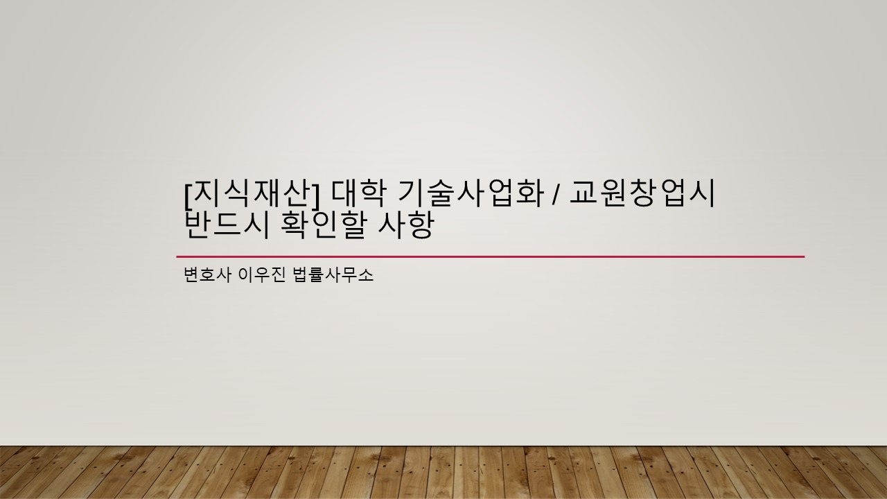 최근 대학이나 연구기관의 기술사업화가 활발해지고 그 과정에서 그 기관에 속한 종업원(교수 등)과의 기술이전 계약, 후속 개량발명시 지식재산의 귀속, 기술료 분배, 지분의 취득 및 처분과 관련하여 다양한 이슈가 발생하고 있는 것으로 이해됩니다. 특히 '교원창업'(교원이 창업기업의 대표나 임원으로 참여하는 것으로, 각 대학마다 교원창업규정, 실험실창업규정을 두어 관리됨)의 경우, 휴직이나 겸직제도가 마련되어 있어 휴직기간에 발생한 발명의 귀속에 관한 갈등이 발생하기도 하고, 교원이 직무발명의 범위를 자의적으로 해석하여 이에 대한 보고의무를 이행하지 않거나, 단독 출원을 진행하는 등 소속기관과의 분쟁이 발생하는 경우가 있어 관련 법령이나 규정, 내부 지침, 계약의 검토가 중요한 절차로 부각되고 있습니다.