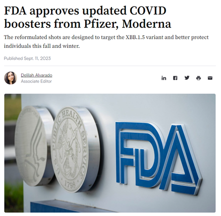 기사 출처: https://www.biopharmadive.com/news/covid-booster-fda-approval-pfizer-moderna-xbb-omicron/693311/