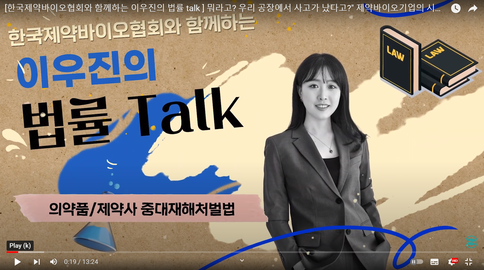 한국제약바이오협회와 함께하는 이우진의 법률 Talk 제1편 “제약바이오기업, 중대재해처벌법 쟁점요약” 영상을 통해 신약개발 및 관련 서비스를 제공하는 제약바이오기업에 적용되는 법률과 대비방법에 대하여 알아봅니다.