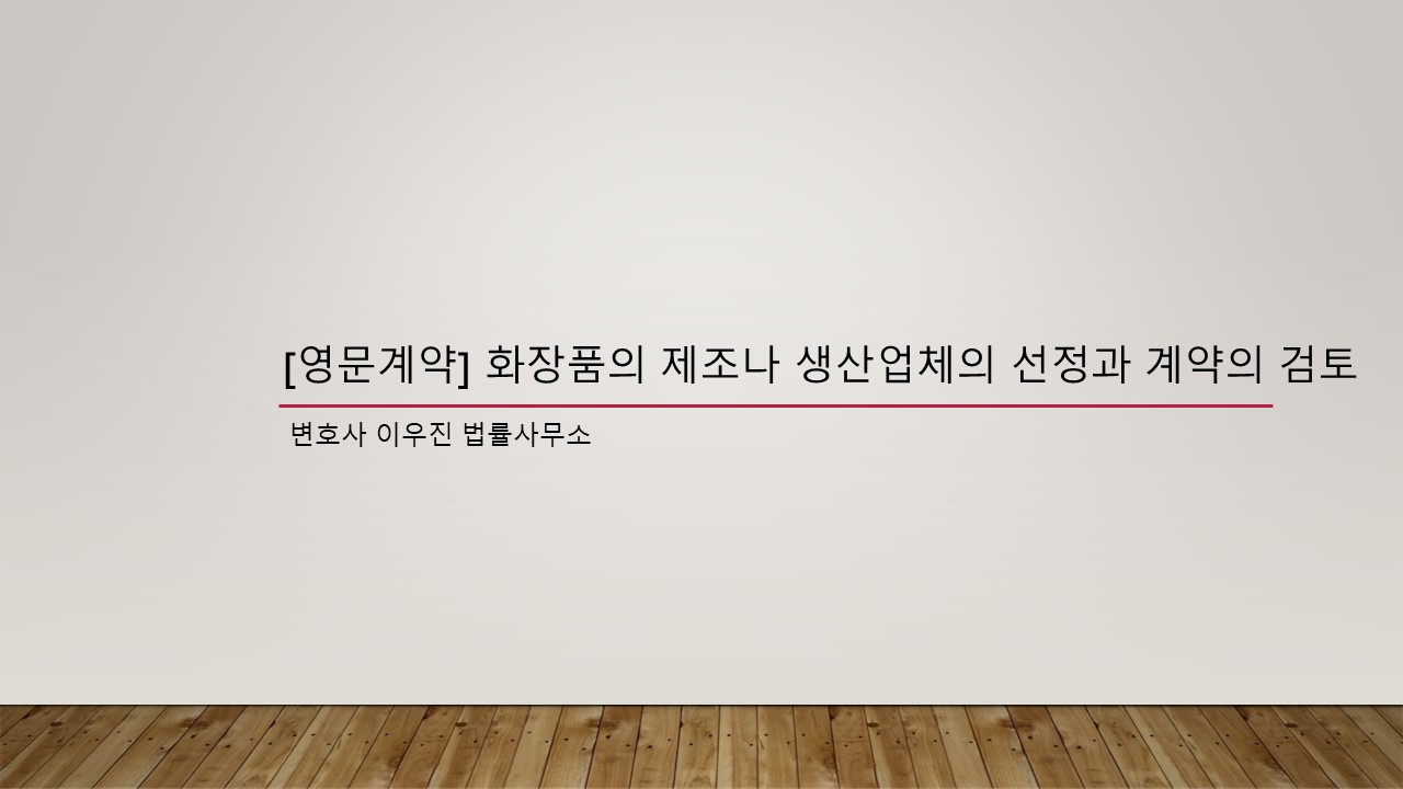 [영문계약] 화장품의 제조나 생산업체의 선정과 계약(Cosmetics Manufacturing Agreement)의 검토