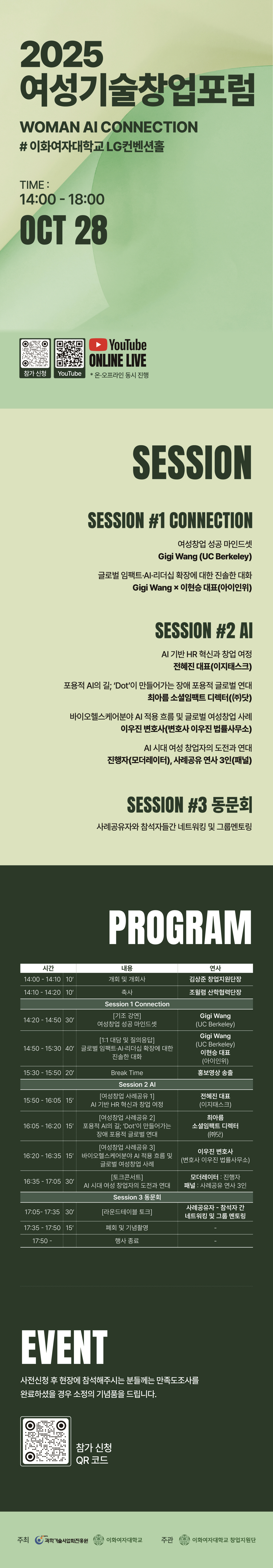 창업지원단, 2025 여성기술창업포럼 성료: AI 시대, 여성 창업 성공의 나침반은 '성장 마인드셋'과 '연결' 등록일2025.11.10 493 이화여자대학교 창업지원단, AI 시대 여성 리더십과 글로벌 연대 모색 UC