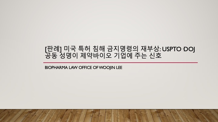 두 기관은 이 진술서에서 특허 침해 금지명령(injunctive relief)에 관한 미국 행정부의 정책 입장을 명확히 하였습니다. 특허 집행 환경의 변화를 예고하는 이 성명의 내용과 제약·바이오 기업에 대한 시사점을 정리합니다.