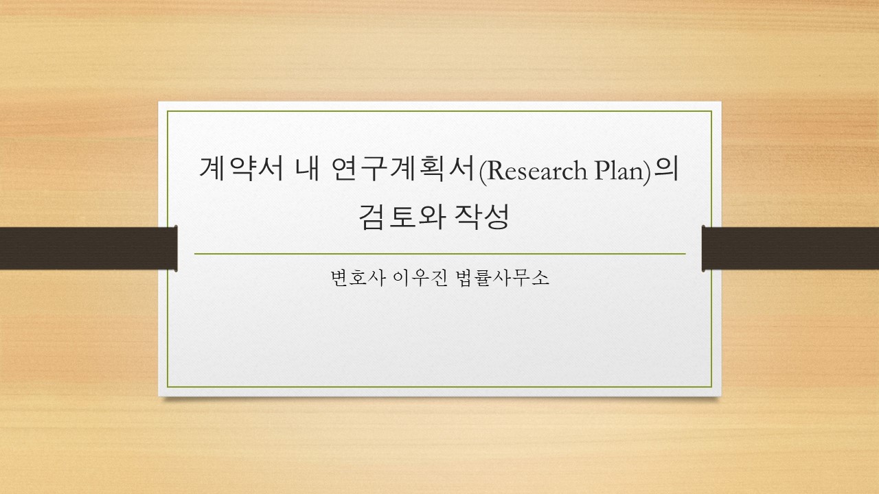 이외에도 해당 계약서의 특징에 따라 협상이 필요하거나 추가 기술되어야할 내용이 있겠습니다만, 중요한 점은 계약서 검토 단계에서 연구계획서에 추가 수정이나 삭제 등 변경이 생긴다면, 계약서와의 유기적 관계, 특히 금원지급, 지식재산권리 관계, 비밀유지 조항 등의 추가적 검토는 부수적으로 진행되어야한다는 것입니다.