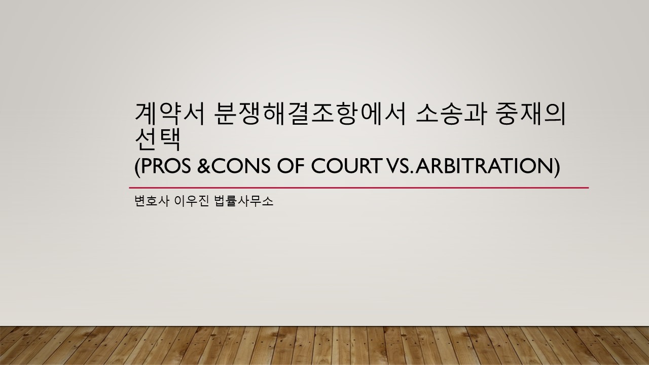 영문계약에서 분쟁해결 조항을 작성 또는 검토하실 때에는 반드시 전문가와 상의를 거치시길 제안드립니다.