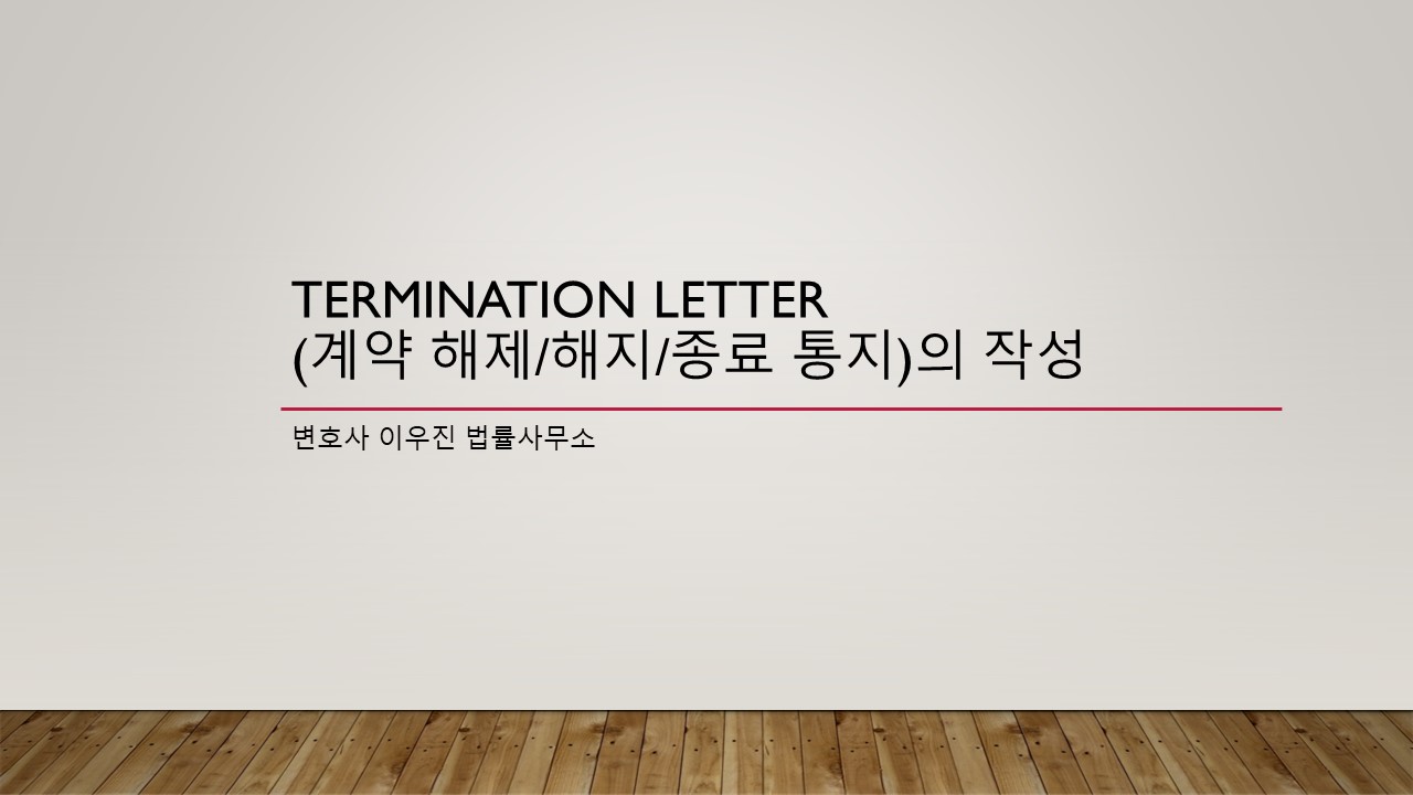 이상 종료 통지서(Termination Letter)를 작성하실 때 유의하실 사항을 알아보았는데요, 계약은 체결과 유지도 중요하지만 종료시 양 당사자가 원만히 비즈니스 관계를 정리할 수 있도록 기초를 마련하는 통지서의 중요성을 간과하시지 않으시기를 바라며, 영문계약 작성과 검토 경험이 많은 전문가와 상의하시어 종료 이후 발생할 수 있는 분쟁을 미리 예방하시기 바랍니다.