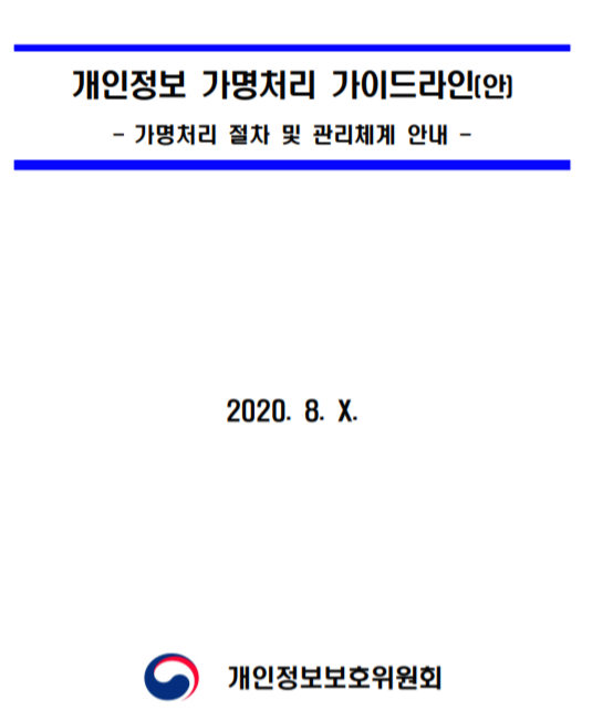 빅데이터, AI 등 다양한 융・복합 산업에서의 데이터 이용 수요가 급증하고, 데이터 활용의 핵심인 가명정보 활용에 대한 법적 근거가 마련되어 체계적인 데이터 활용 기반이 조성됨에 따라 데이터 활용에 필요한 가명처리 기술·절차·관리체계 등을 구체적으로 안내하여 개인정보보호는 더욱더 강화하고 안전한 데이터 활용기반을 위해 2020.08.에 개인정보보호위원회에서 발행한 가명정보처리가이드라인을 첨부합니다.